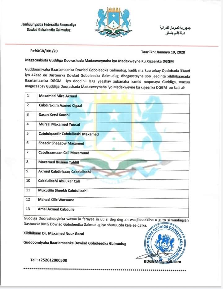 Aqri: Guddiga doorashada madaxweynaha Galmudug oo maanta lagu dhawaaqey