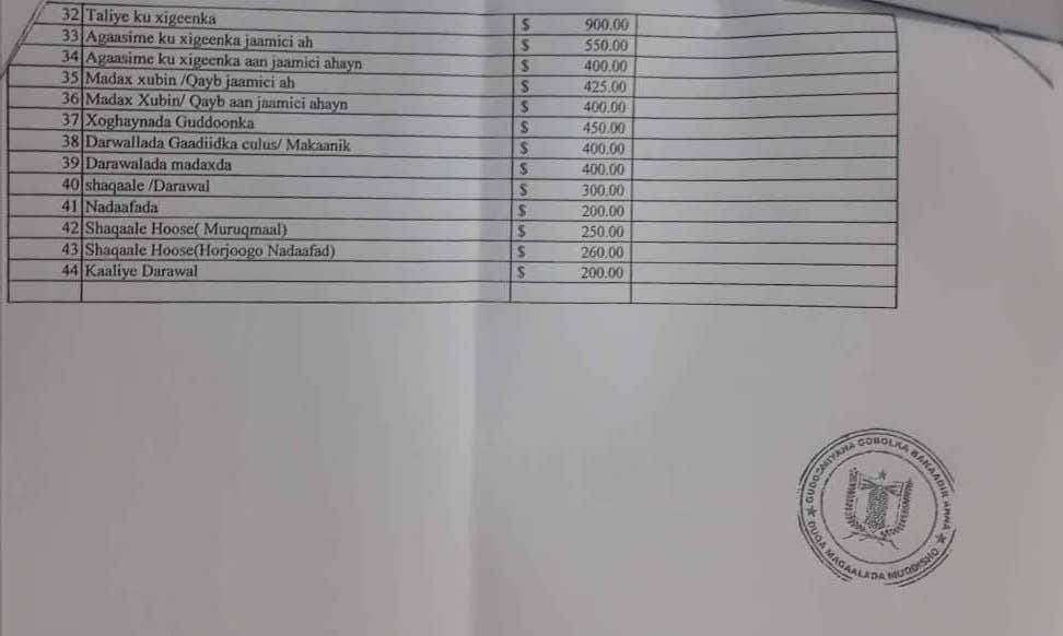 Si kastaba, jaangoyntan cusub ayaa weli muujineysa in Gudoomiye Ku xigeenada Gobolka Banaadir iyo Xoghaya Guud ee Gobolka Baanaadir ay u heli doonaan mushaar ahaan bishii in ka badan kan Wasiirada Xukuumada JFS oo qaata bishii 5,000$, halka Ku xigeenada Gudoomiyaha ay heli doonaan Mushaar dhan 6,000$ oo aanay ku jirin gunnooyinka kale.