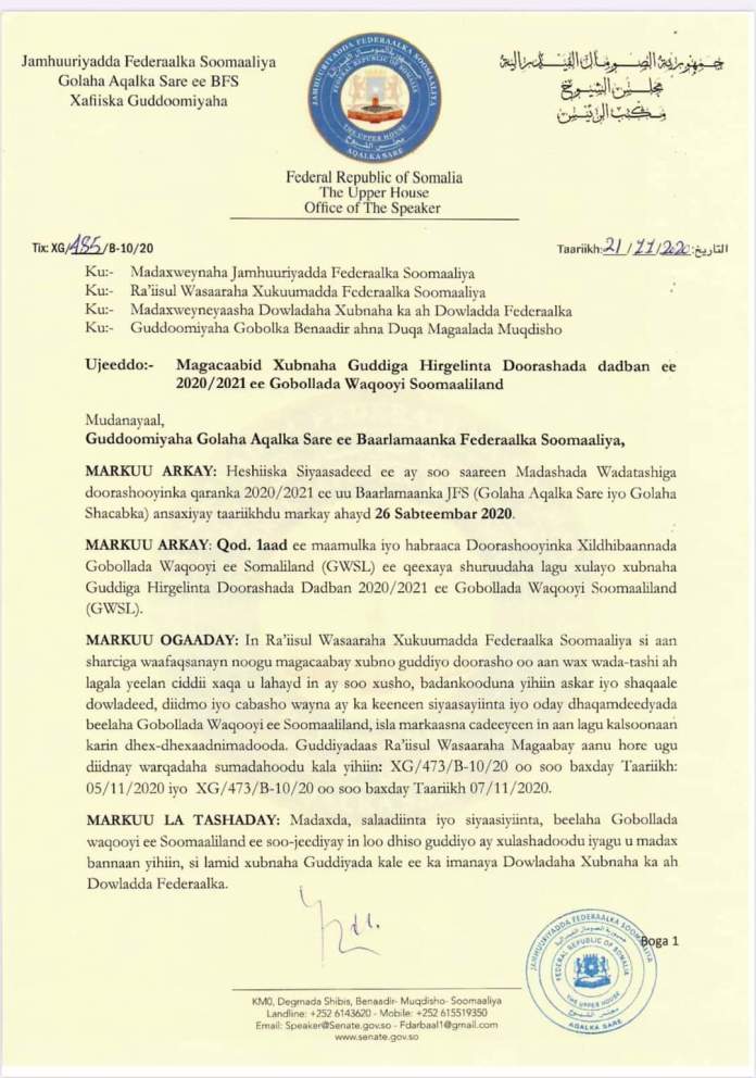 Gudoomiyaha Aqalka Sare ayaa horay Madaxweyne Farmaajo ugu eedeeyay in uu doonaayo in uu afduubto doorashada xildhibaanada kasoo jeedda gobolada Waqooyi ee Soomaaliya.