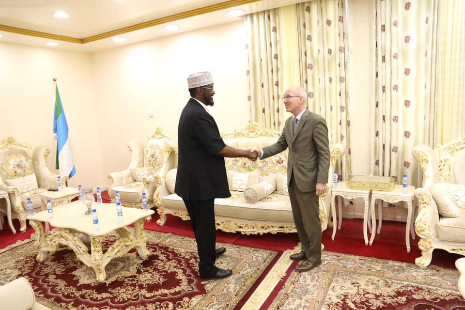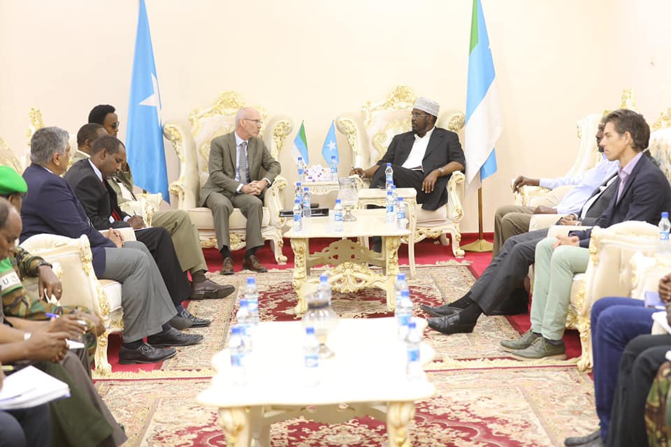 Kismaayo (Caasimada Online) – Madaxweynaha Jubaland Axmed Maxamed Islaam ayaa xarunta madaxtooyada ku qaabilay wafdi kasocday beesha caalamka oo uu hogaaminayay wakiilka QM ee Soomaaliya James Swan.
