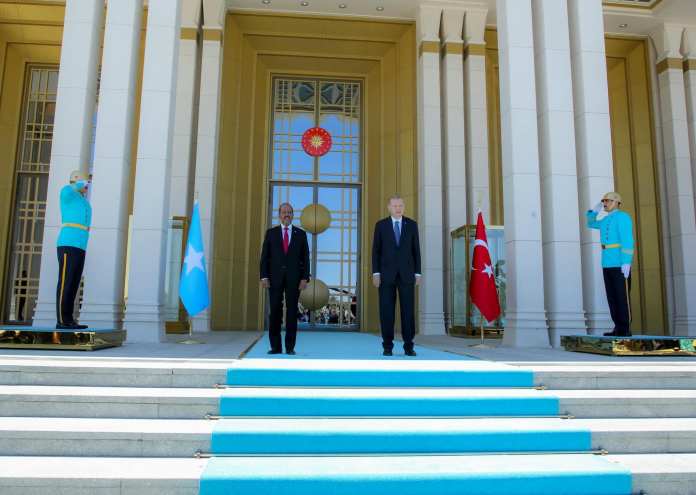 Madaxweynaha ayaa waxaa usoo baxay oo soo dhoweyntiisa hormuud ka ahaa madaxweynaha Turkiga Recep Tayyip Erdogan, halkaasi oo wada-hadallo rasmi ah ay goordhow uga billowdeen.
