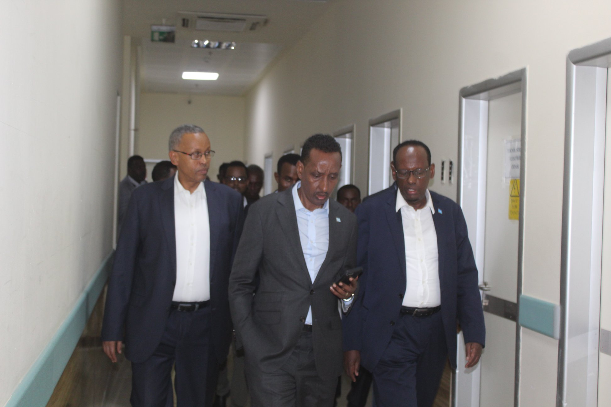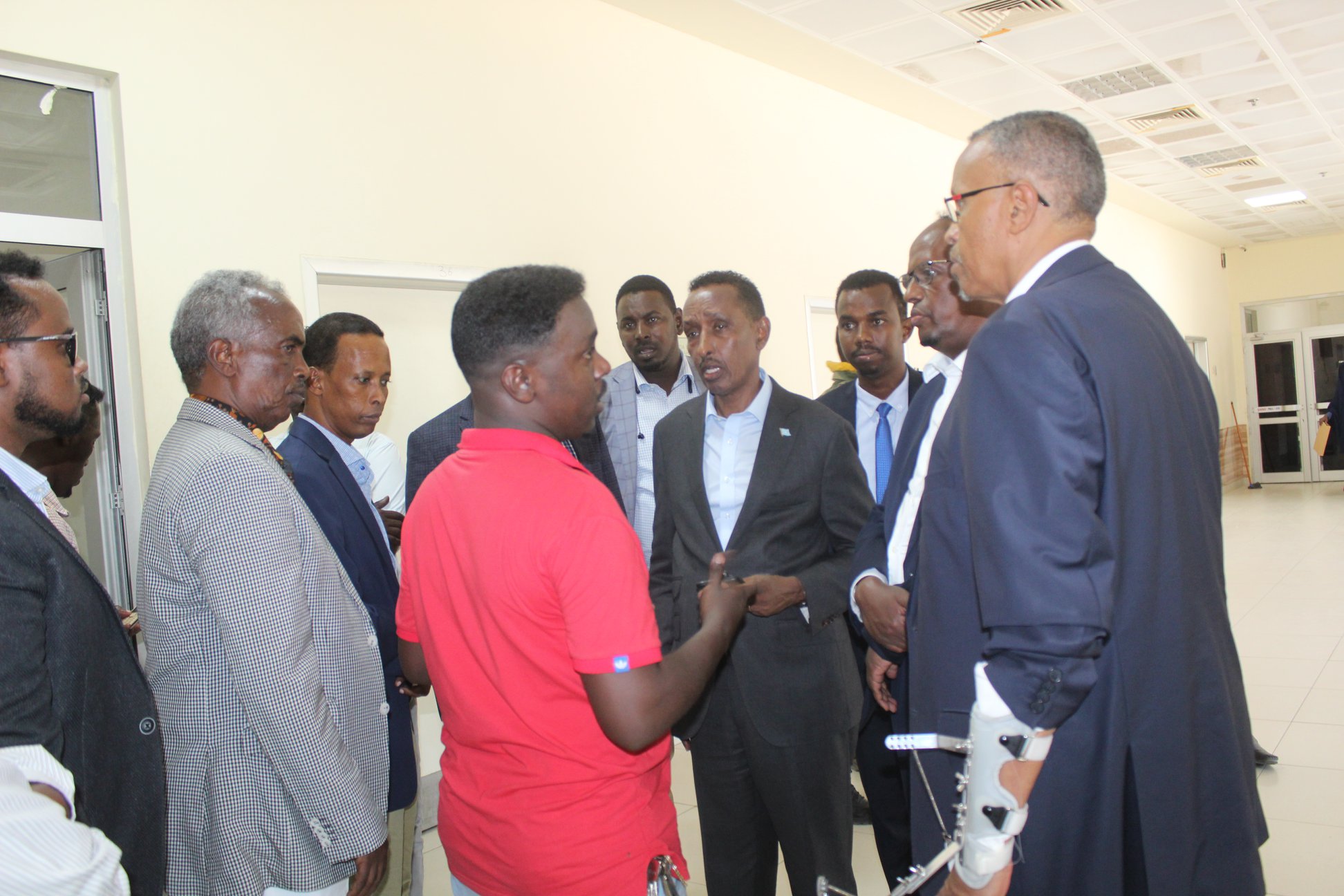 Muqdisho (Caasimada Online) – Wasiirka Arrimaha Dibadda iyo Iskaashiga Caalamiga, Mudane Danjire Axmed Ciise Cawad, oo ay wehliyeen Wasiirka Ganacsiga iyo Warshadaha, Mudane Eng. Cabdullaahi Cali Xasan iyo Wasiiru dowlaha Xafiiska Ra’iisul wasaaraha, Mudane Cabdullaahi Xaamud Maxamed, ayaa maanta oo Sabti ah, waxa ay booqdeen dadka ku dhaawacmay qaraxii maanta ka dhacay isgoyska ex-control Afgooye.