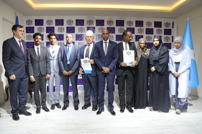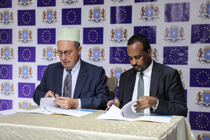 Muqdisho (Caasimada Online) – Wasiirka Qorsheynta xukuumadda federaalka Soomaaliya, Jamaal Maxamed Xasan, iyo agaasimaha guud ee midawga Yurub ee horumarinta caalamiga ah, Mr Stefano Manservisi ayaa si wadajir ah maanta u saxiixay 23 Milyan Yuuro oo Midowga Yurub ay ku maal gelinayaan mashruuca horumarineed oo loogu magac daray Eng. Yariisow, kaasi oo ka qayb qaadanaya horumarinta magaalooyinka Muqdisho iyo Berbera.