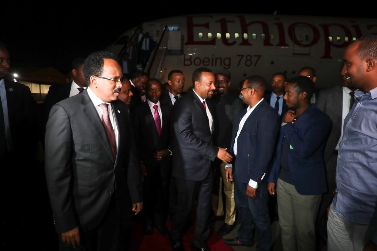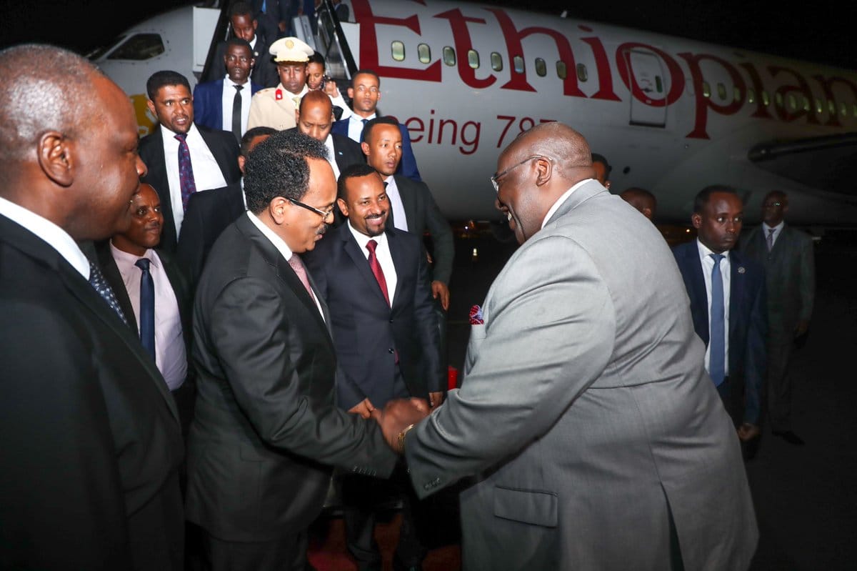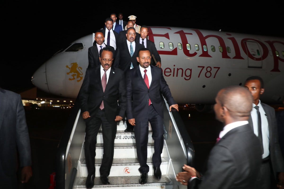 Madaxweynaha ayaa waxaa safarkiisa ku wehliya ra’iisul wasaaraha Itoobiya Abiy Ahmed oo ay iska raaceen magaalada Addis-Ababa oo kal sii horreysay oo maanta ah ay wada-hadallo ku yeesheen.