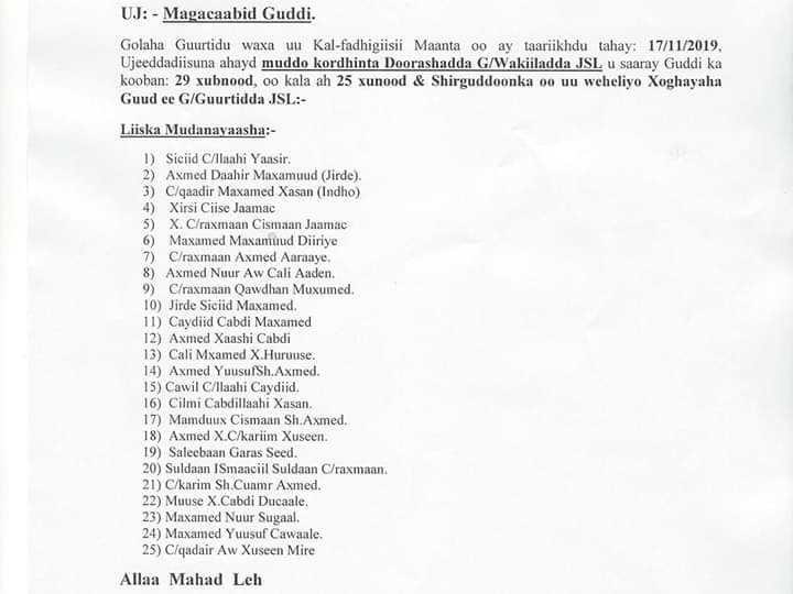 Xildhibaanada golaha ayaa saaka loo akhriyay qoraalka uu Madaxweyne Biixi kaga dalbanayey golaha in muddo kordhin loo sameeyo, iyadoona cod lagu meel-mariyay guddigan cusub ee loo saaray inay dalabka Madaxweynaha ka soo talo-bixiyaan.