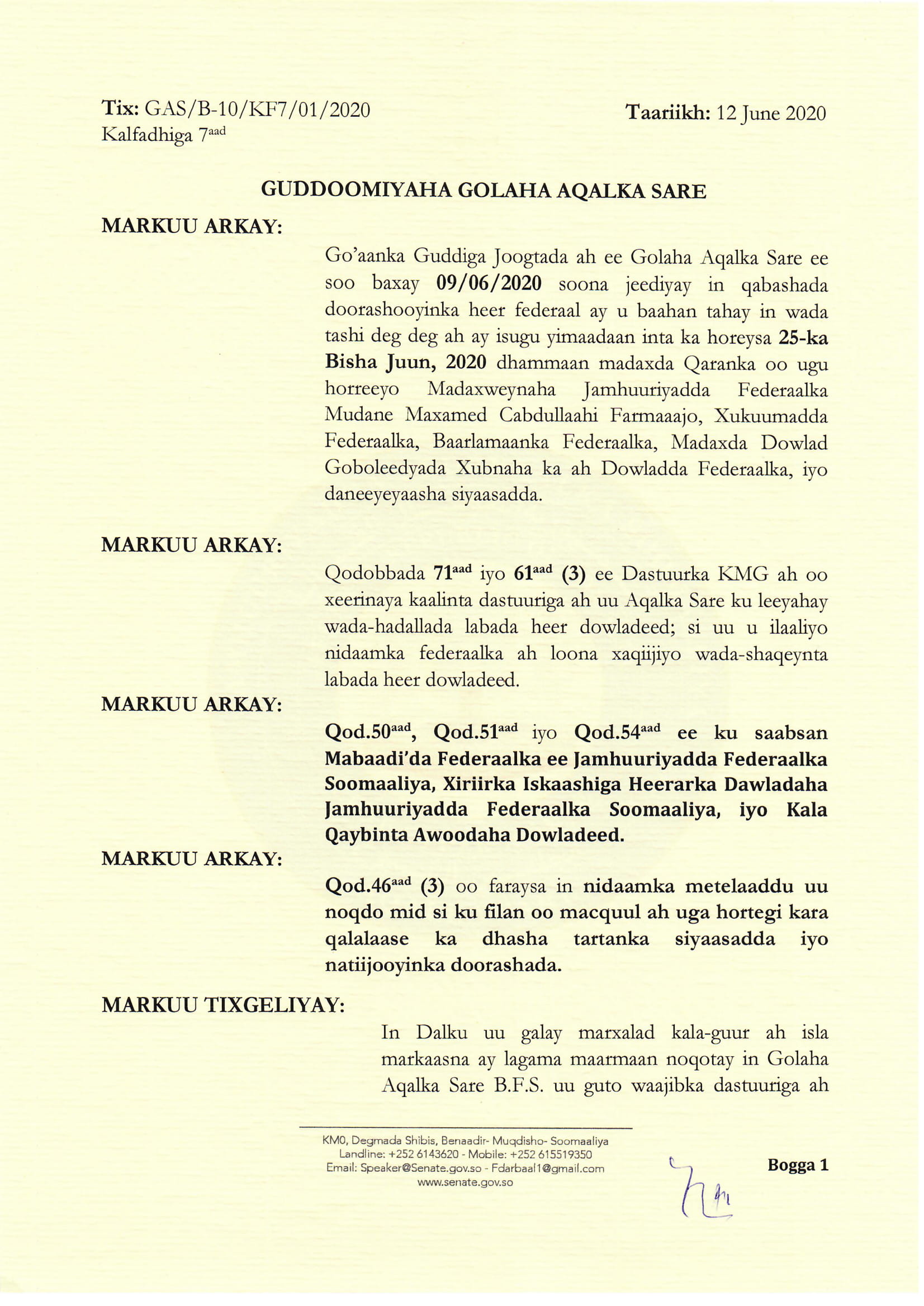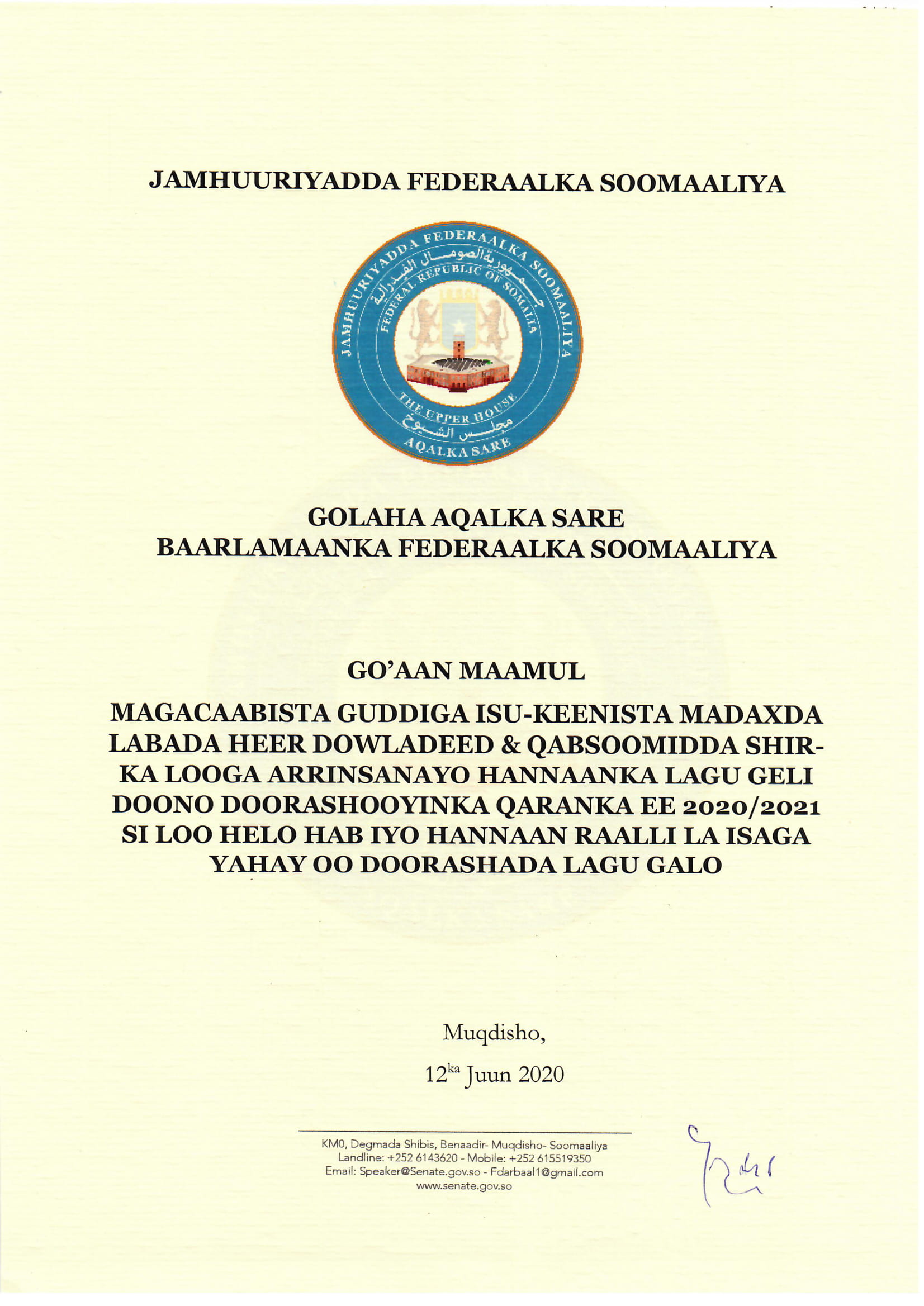 Sida cad qoraalka Aqalka Sare, guddigan ayaa ka shaqeyn doona qabsoomidda shirka looga arrinsanayo hannaanka lagu geli doono doorashooyinka qaranka ee 2020/2021, si loo helo hab iyo hannaan raalli la isaga yahay oo doorashada lagu galo.
