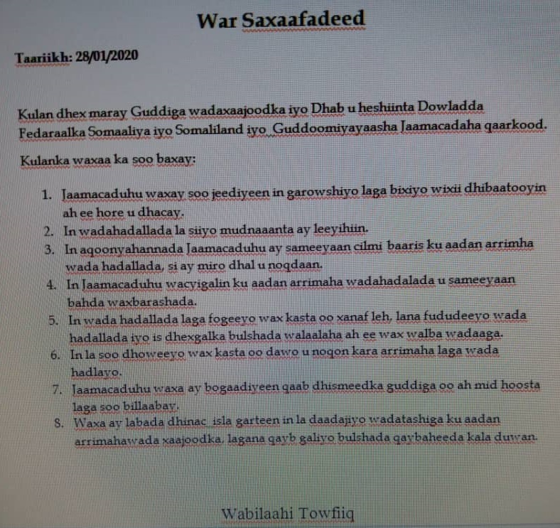 Halkaan Hose ka aqriso warsaxaafadeed ka soo baxay kulankaas.