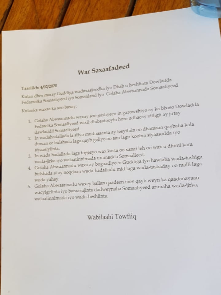 Muqdisho (Caasimada Online) – Wararka ka imaanaya magaalada Muqdisho ayaa sheegaya in saakay ay kulan wada-tashi ah la yeesheen Guddiga wada-xaajoodka Dowladda Somaaliyeed iyo Somaliland golaha abwaannada Somaliyeed.