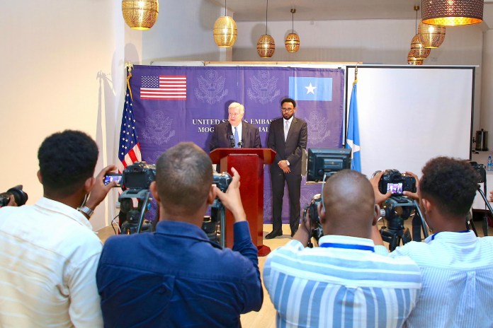 Wasiirka Maaliyadda Soomaaliya Biixi Imaan Cige iyo Safiirka Dowladda Mareykanka ee Soomaaliya Richard H. Riley ayaa si wadajir ah heshiiskaan ugu kala saxiixday xarunta Safaaradda Mareykanka ee Muqdisho.