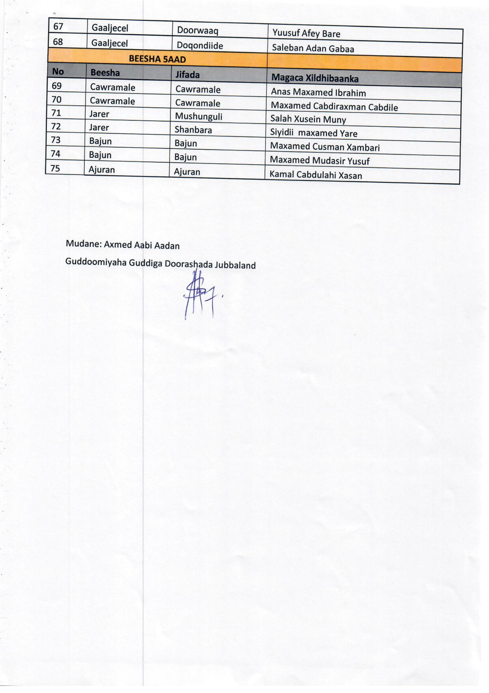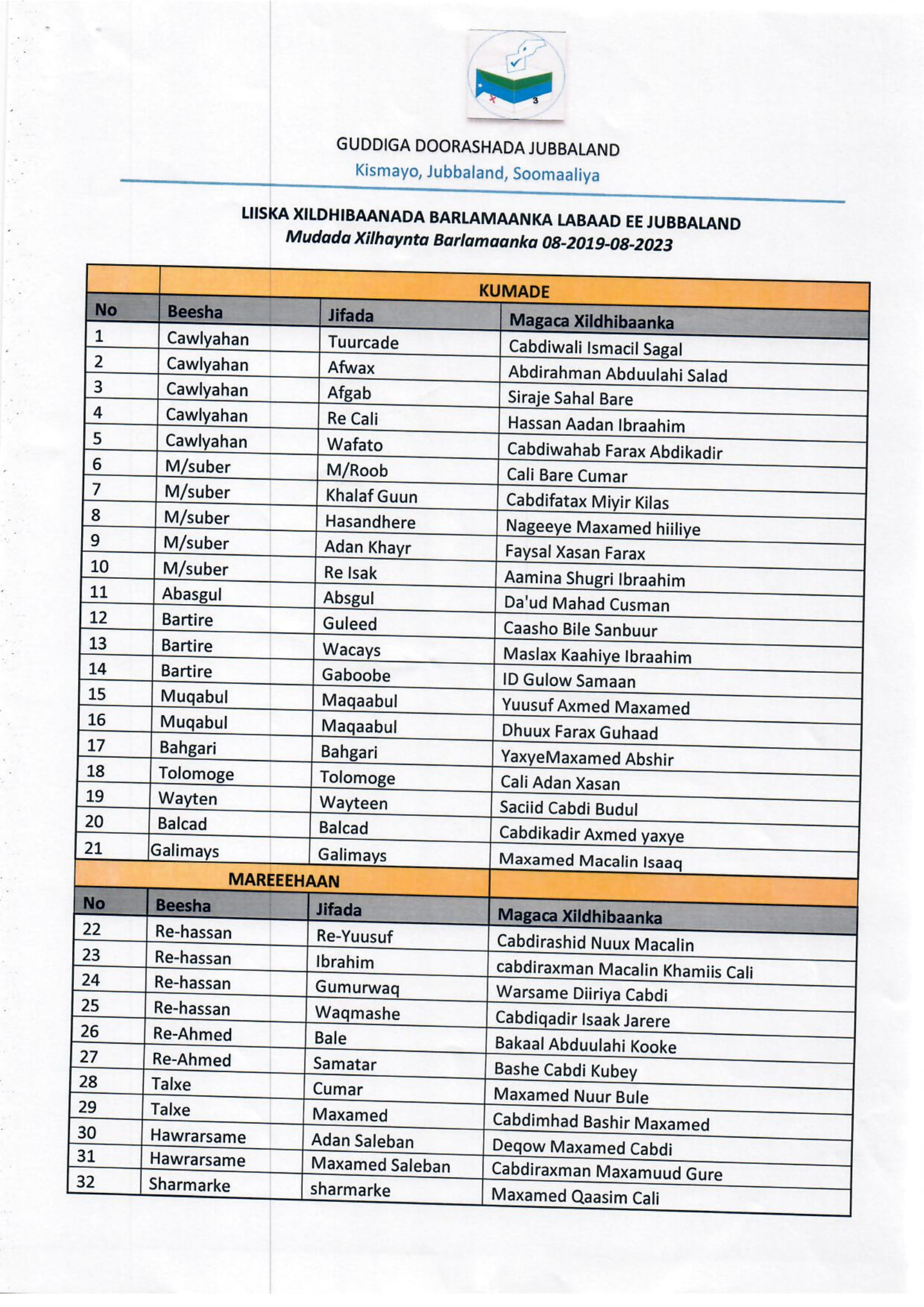 Kismaayo (Caasimada Online) – Guddiga doorashada oo ay dhowaan magacaabeen Musharraxiinta ka soo horjeeda madaxweyne Axmed Madoobe ayaa dhankooda soo saaray liiska xildhibaanada cusub ee baarlamaanka labaad ee Jubbaland.