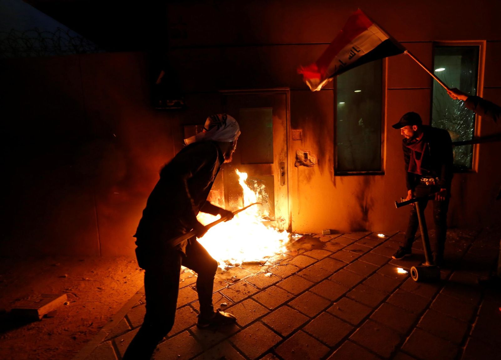 Dibad-baxayaasha isku dayaya inay galaan safaaradda Mareykanka ee Iraq oo dhowr kun ah, ayaa ka carreysan duqeymo ay ciidamada Mareykanka la beegsadeen maleeshiyo Iran ay taageerto oo ku sugan dalalka Iraq iyo Syria.