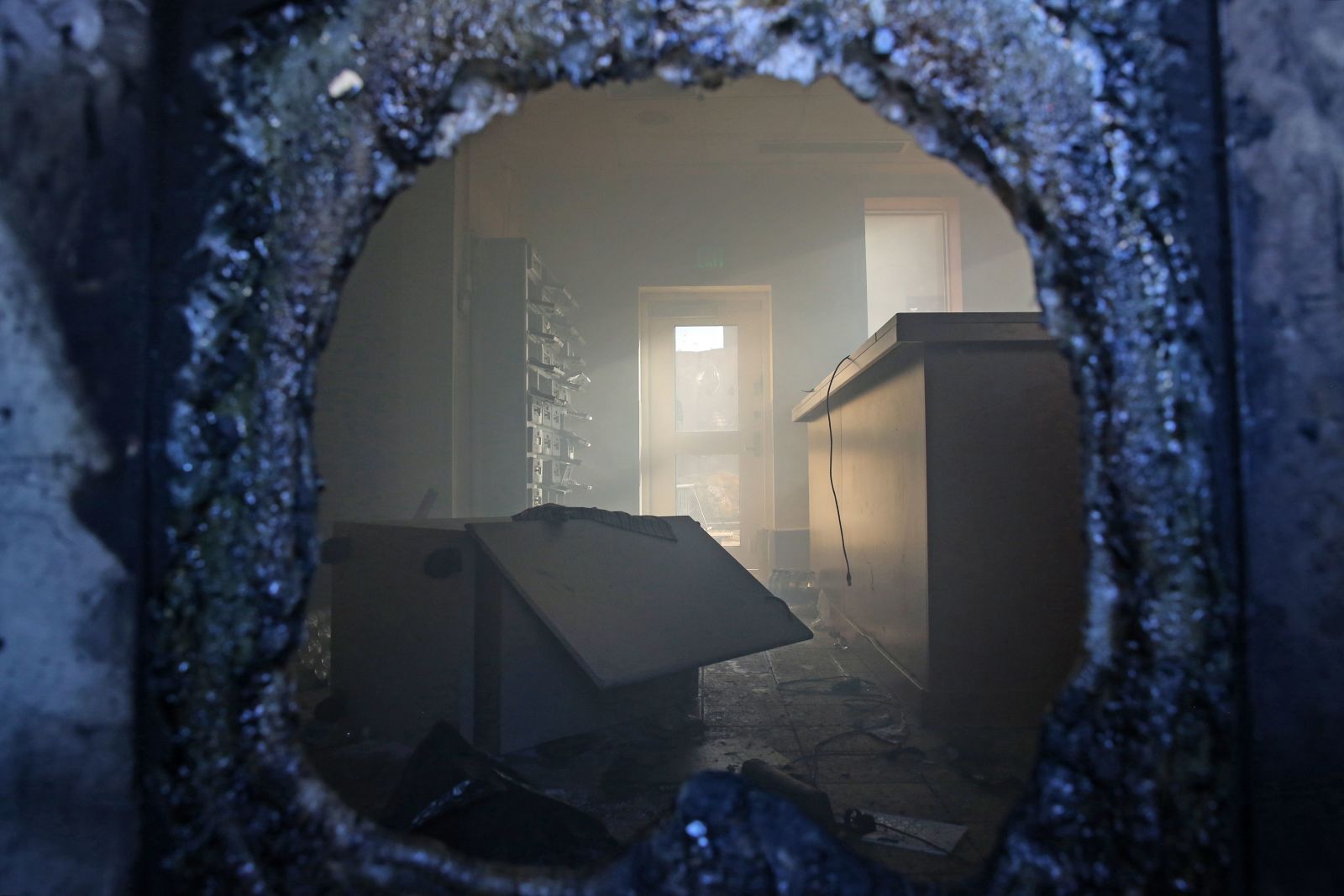 Dibad-baxayaasha ayaa maanta ku dhowaaday darbiga kaliya ee u dhaxeeya ayaga iyo dhismaha weyn ee safaaradda, waxaana ay gubeen calanka Mareykanka.
