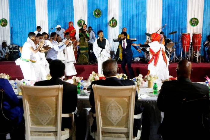 Munaasabadda casho sharafta oo ahayd mid si heersare ah loo agaasimay ayaa waxa ka qayb-galay Ra’iisul Wasaare Xasan Cali Khayre, Guddoomiyaha Aqalka Sare Mudane Cabdi Xaashi Cabdullaahi, Guddoomiyaha Golaha Shacabka Mudane Maxamed Mursal Sheekh Cabdiraxmaan, Ra’iisul Wasaare Ku Xigeenka Mudane Mahdi Maxamed Guuleed, Guddoomiyaha Maxkamadda Sare Mudane Baashe Yuusuf Axmed, Guddoomiye Ku Xigeenka Labaad ee Golaha Shacabka Mudane Mahad Cabdalla Cawad, Guddoomiyaha Gobolka Banaadir Mudane Cabdiraxmaan Cumar Cusmaan, Wasiirro iyo Xildhibaanno ka tirsan DFS.