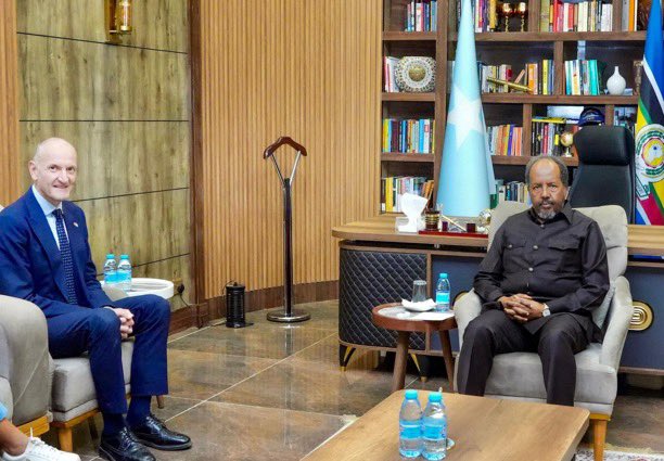 Muqdisho (Caasimada Online) – Madaxweynaha Soomaaliya Xasan Sheekh Maxamuud ayaa qaabilay Safiirka UK ee Soomaaliya, Michael Nithavrianakis, kulankaan ayaa ka dhacay aqalka madaxtooyada Soomaaliya.