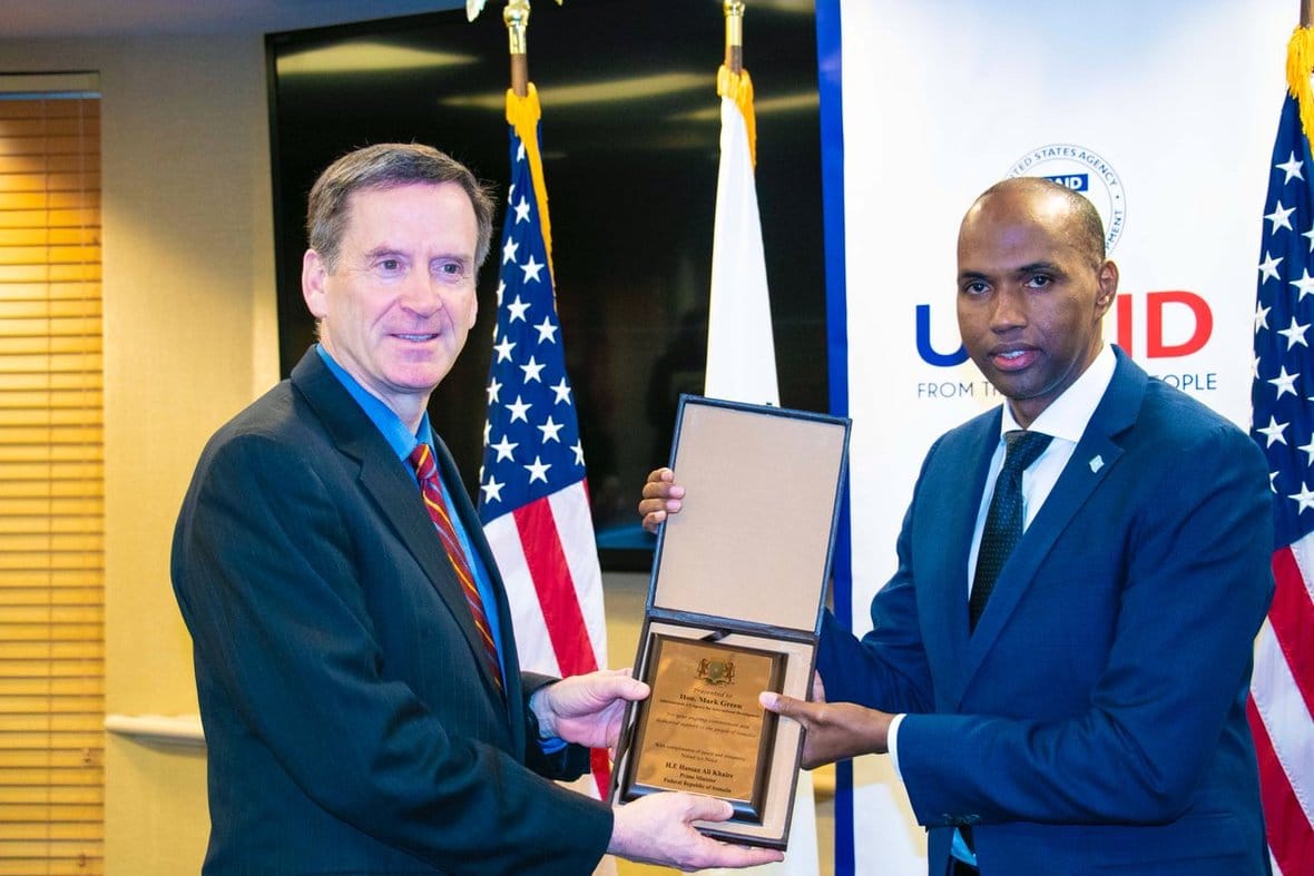 Ra’iisul Wasaare Khayre ayaa Mark Green u sheegay in Soomaaliya ay garowsan-tahay taageerada lixaaadka leh ee USAID iyo howlaha ay Soomaaliya ka waddo, isla markaasna loo baahan yahay in la sii ballaariyo.