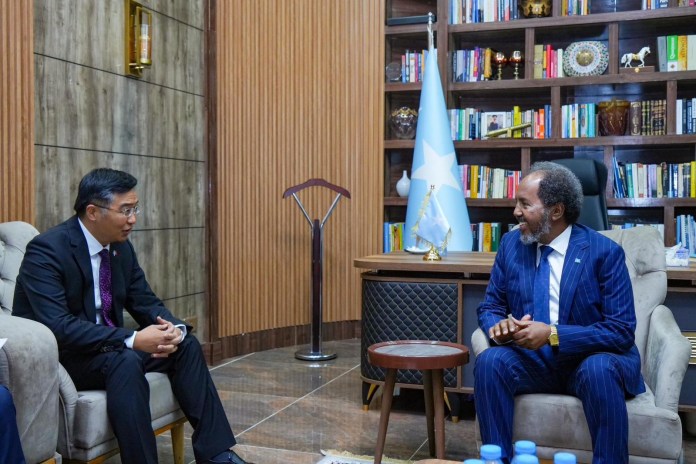 Kulanka Madaxweynaha Soomaaliya Dr. Xasan Sheekh Maxamuud iyo Safiirka dowladda Shiinaha ee Soomaaliya Fei Shengchao ayaa ku soo beegmaya xilli dowladda Shiinaha ay dowladda Soomaaliya u muujisay garab istaag ku aadan xadgudubka dowladda Itoobiya.