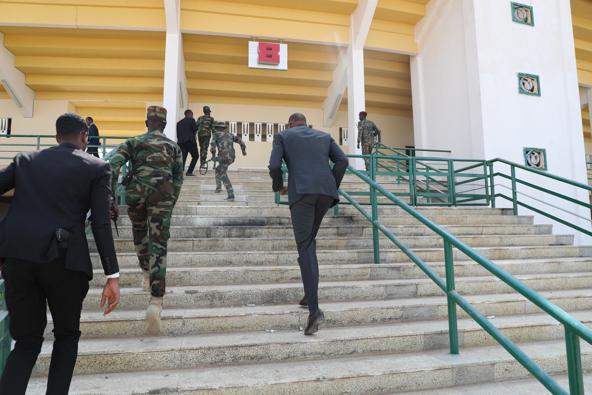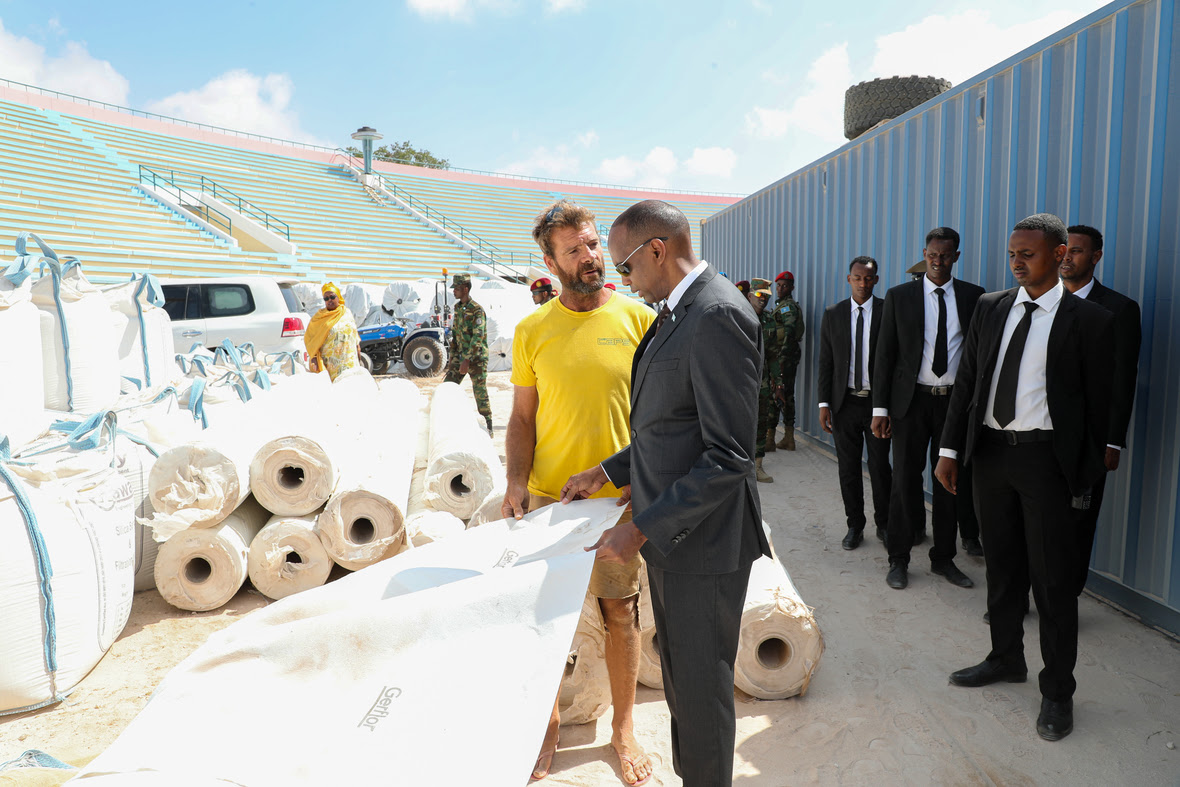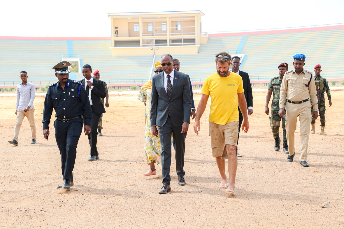 Dhinaca kale, ra’iisul wasaare Xasan Cali Khayre oo ay wehliso wasiirka dhallinyarada iyo ciyaaraha Khadiija Maxamed Diiriye ayaa sidoo kale kormeeray sida uu u socdo dhismaha garoonka ciyaaraha Muqdisho oo dayactirkiisa uu geba-gebo marayo.