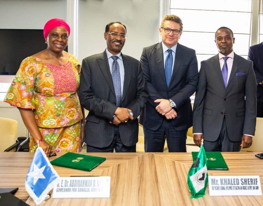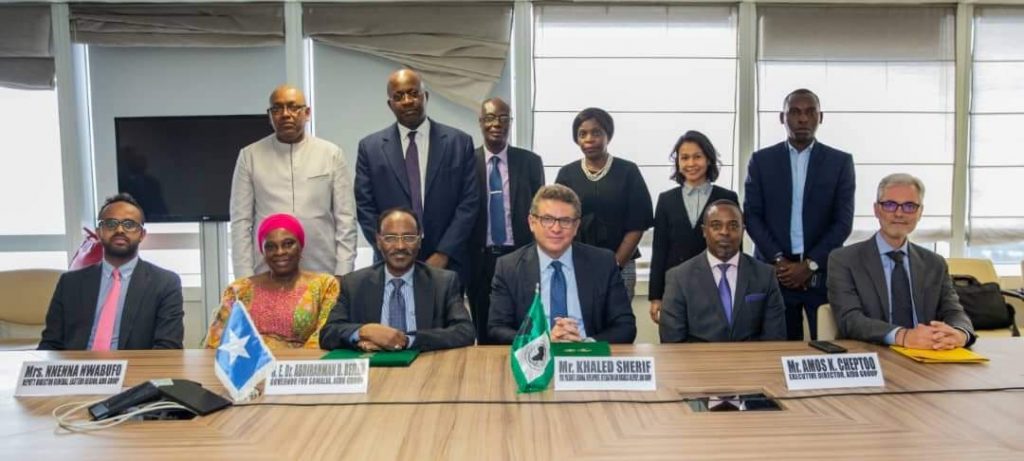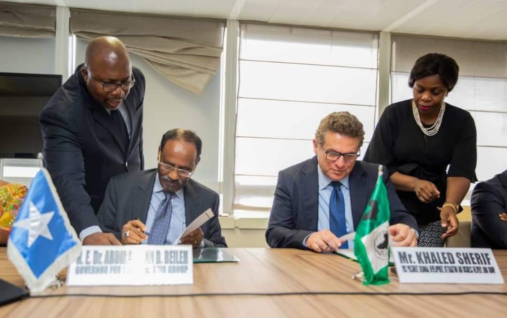 Abidjan (Caasimada Online) – Wasiirka Maaliyadda Soomaaliya Dr. Cabdiraxmaan Ducaale Beyle iyo Madaxweyne ku xigeenka Bangiga horumarinta Afrika Khaled Sherif ayaa kala saxiixday Heshiisika cafinta deymaha Bangigu ku leeyahay Soomaaliya