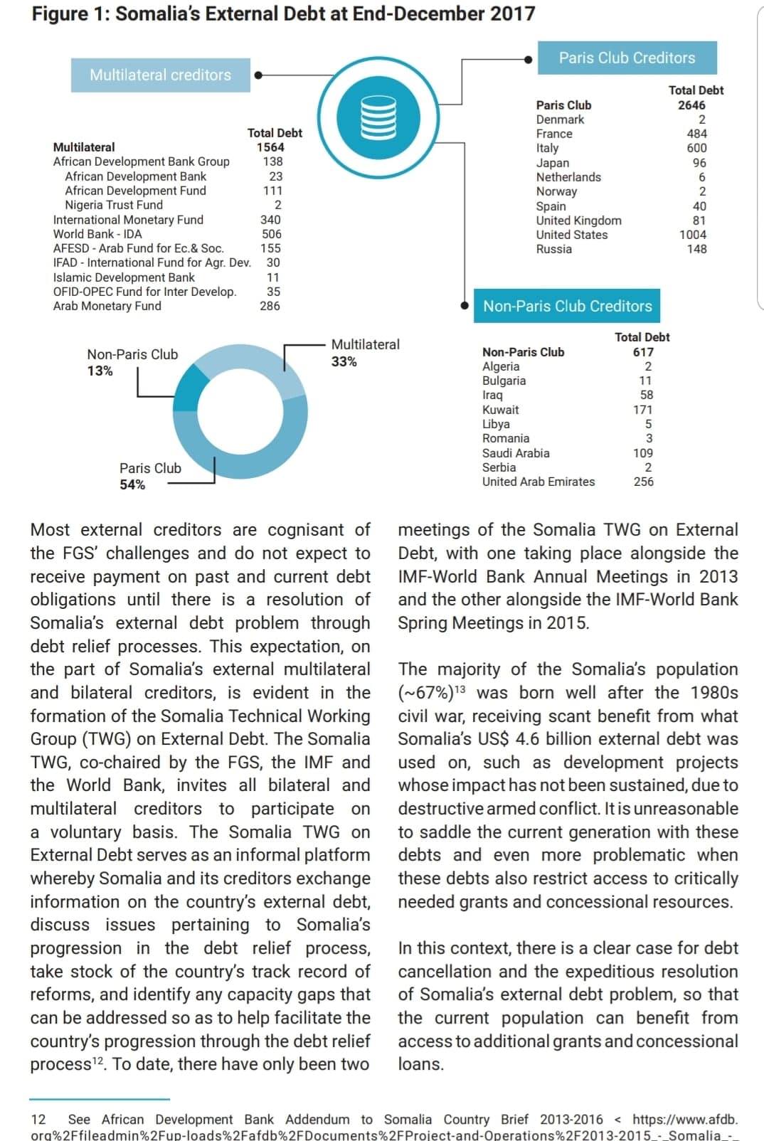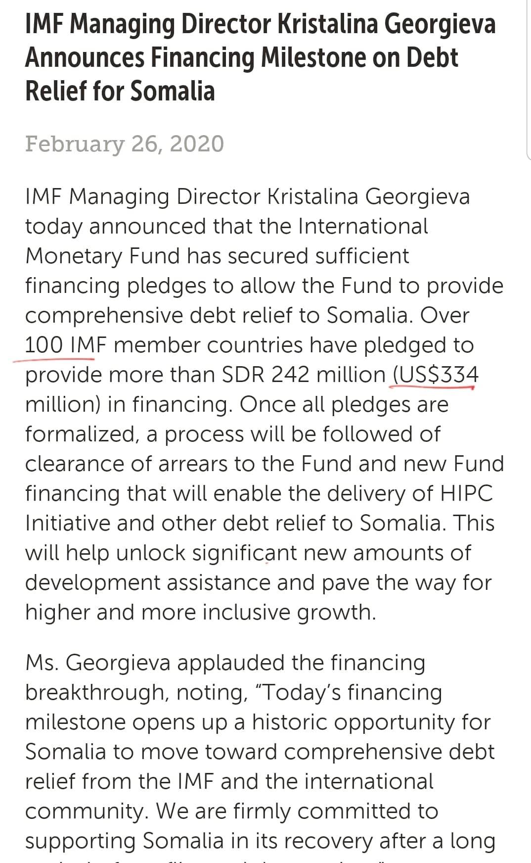 Dulsaarka IMF leedahay waa $334 million, World Bank waa $ 315 million. Waxaa asna $102 million leh African Development Bank.